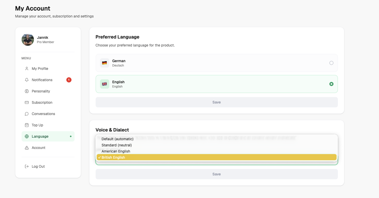 With Careertrainer.ai, you can practice conversations in the language you actually use for leadership or sales. The platform is fully localized in both German and English, while training can also take place in additional languages and regional dialects. This way, a team in Switzerland doesn't practice with artificial standard German, but rather in a linguistic context that is closer to real customer interactions and employee dialogues. For small teams, this is accessible without a complex IT project, while enterprise accounts and white-label partners can manage approved languages in a structured manner.