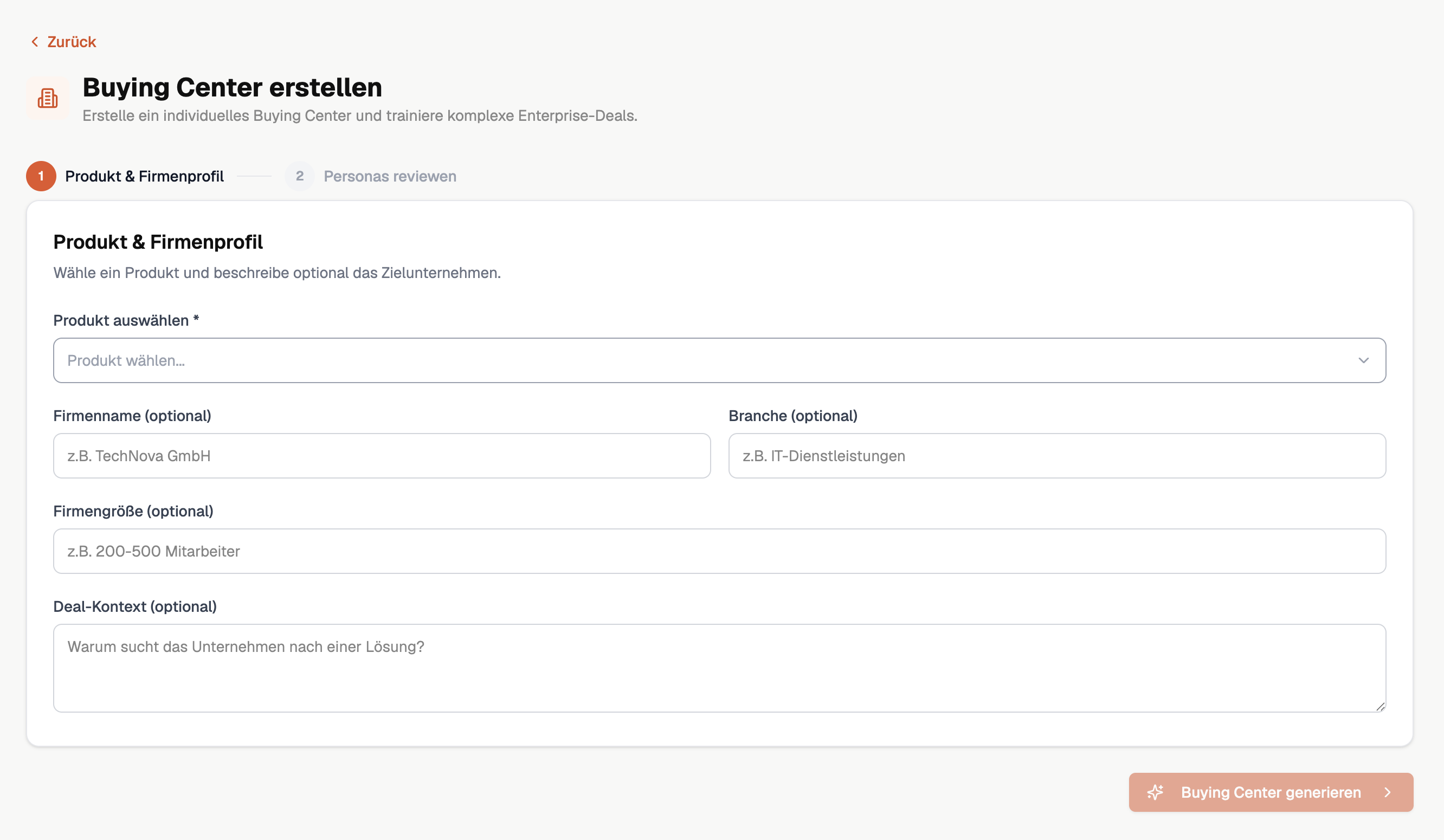 - Du willst komplexe B2B-Situationen inklusive Buying Center vorbereiten, bevor ein echter Deal startet.