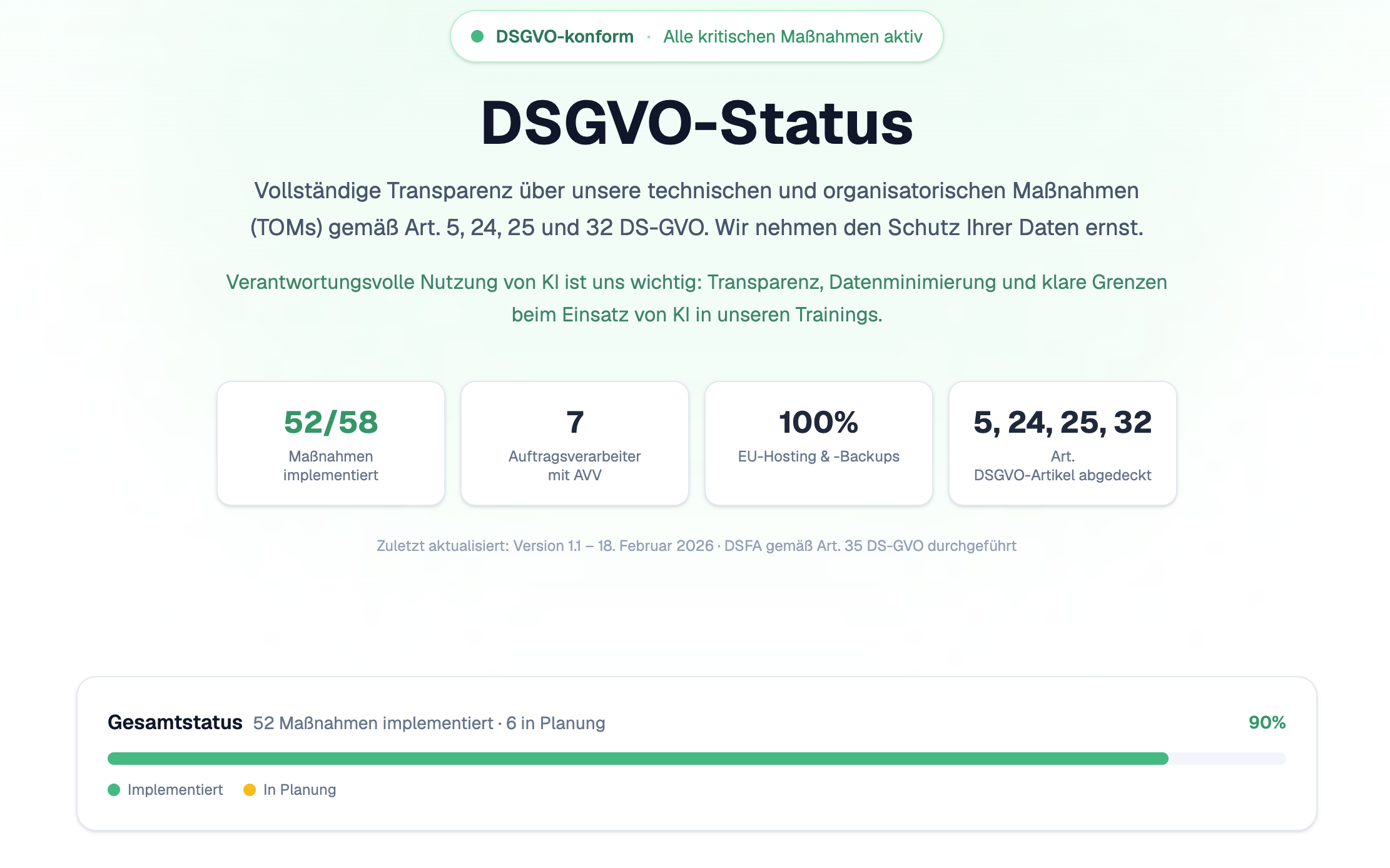 Eure Trainingsdaten und Gesprächsinhalte bleiben privat – auf Servern in der EU, ohne Weitergabe an Dritte.